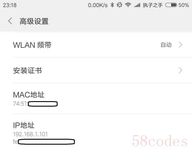 查看自己的MAC地址,一般手机在高级设置里可以找到。