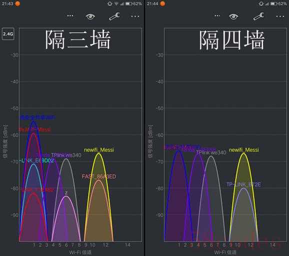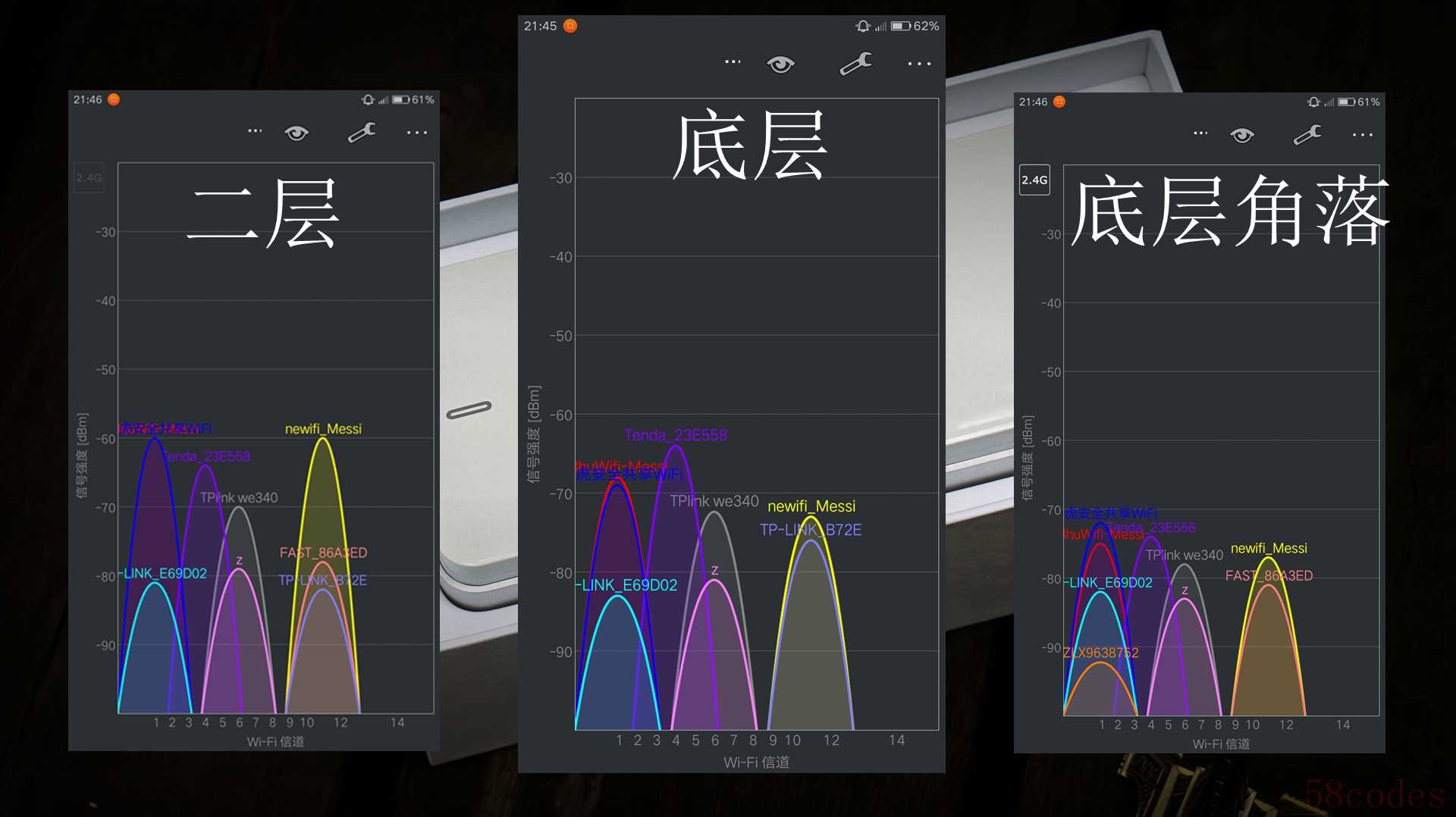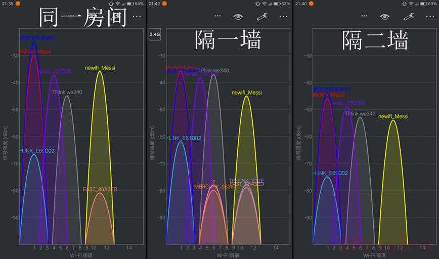墅式信号对比:(笔者家是三层墅式建筑,路由放在三楼最东房间)