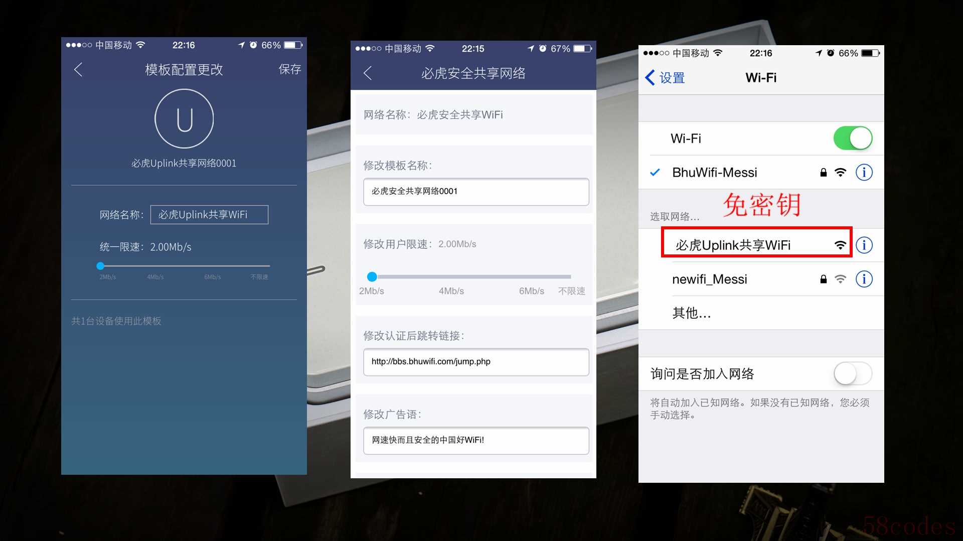 必虎路由器Plus在wifi端,可以有双模式可选,访客模式(免密码登录)和“共享盈利模式”。
