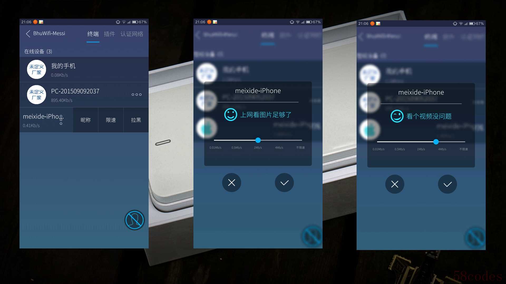 共享后,多人上网容易造成,某些设备占用过高带宽的情况,进行设备特定限速很重要,手动黑名单防蹭网,必虎路由器Plus在限速提示方面做的很人性化,能够显示限速下满足的需要。