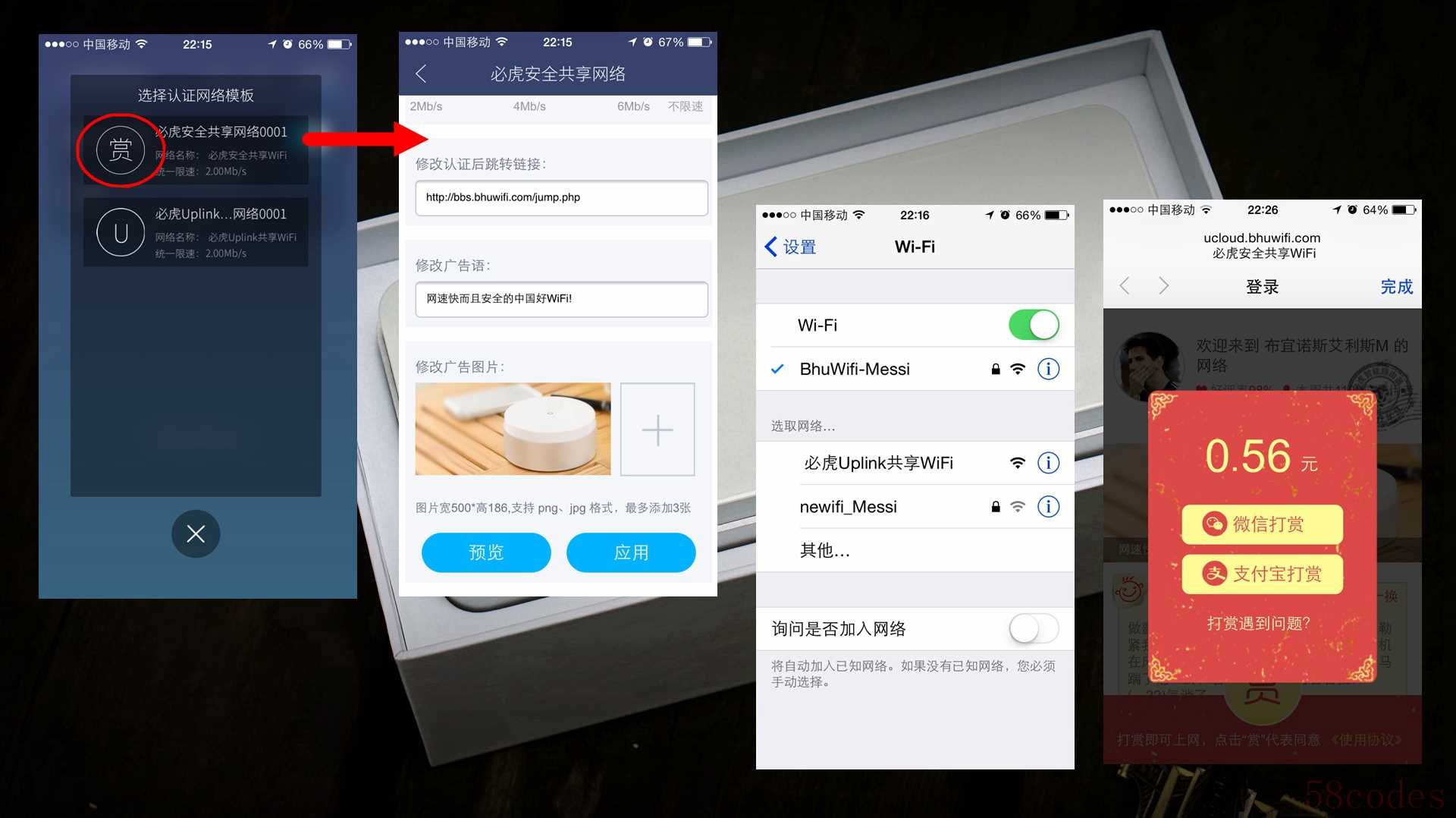 wifi共享方式有两种,一种是前面提到的(无密钥)访客模式,另一种则是真正的付费盈利模式,操作步骤不复杂,设置盈利模板,生成微信支付即可,快捷也方便,但是上网时间和显示的收费金额并不由wifi提供方控制,这点后期希望完善。