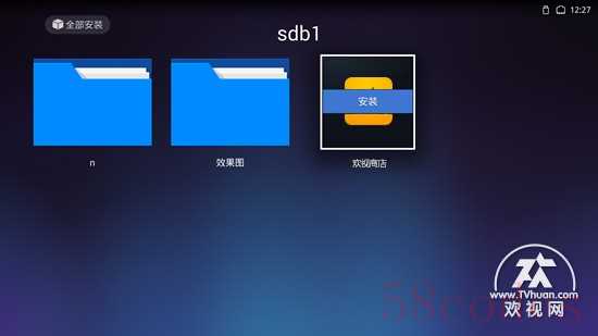 3、盒子会自动识别u盘里的apk,点击安装即可。