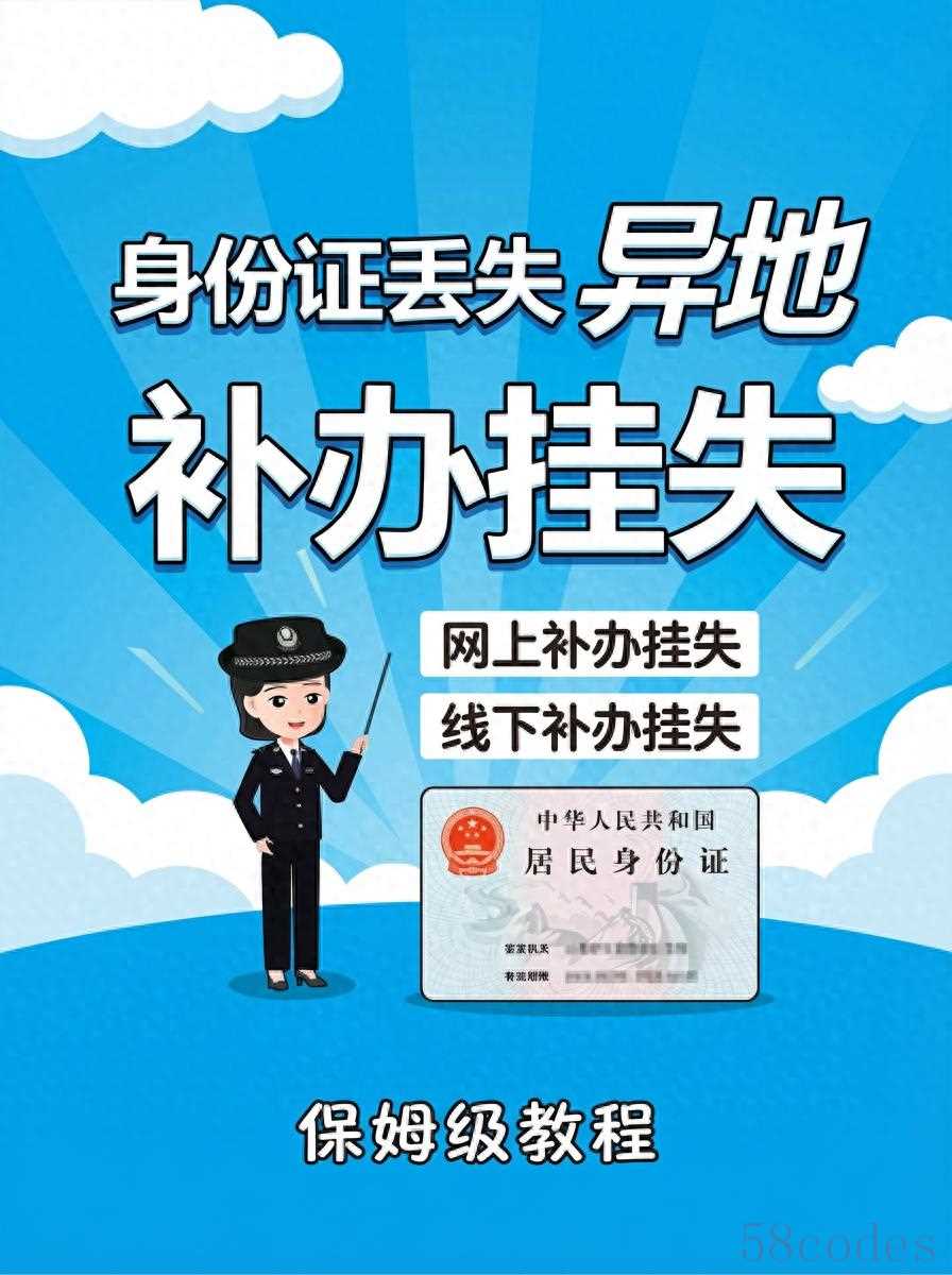 身份证丢失后,无论您身在何处,都可以通过“全国公安政务服务网”或“国家政务服务平台”进行"电子化挂失"。这"不会"影响您后续的异地补办流程,也不会冻结您的身份证。下面是详细的网上挂失补办攻略: