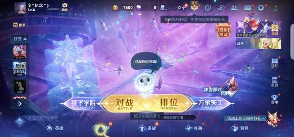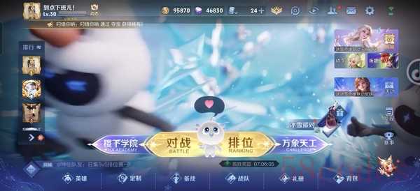 游戏首页的布局是保持了一致的,而且功能基本对齐,排位、对战、万象天工、商城、战令等模块应有尽有,保证了测试服的基本体验。从进入游戏开始,其实能够感觉到每次点击或者动画切换的流畅性是非常不错的,能够给玩家留下不错的初印象。而且,测试服也更新了最新上线的冰雪奇缘主题,画面非常炫。
