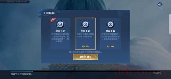 在同意权限之后,则会弹出极简、全量、精简下载的提示,全量下载包约为8.5G,精简下载包约为1.2G。