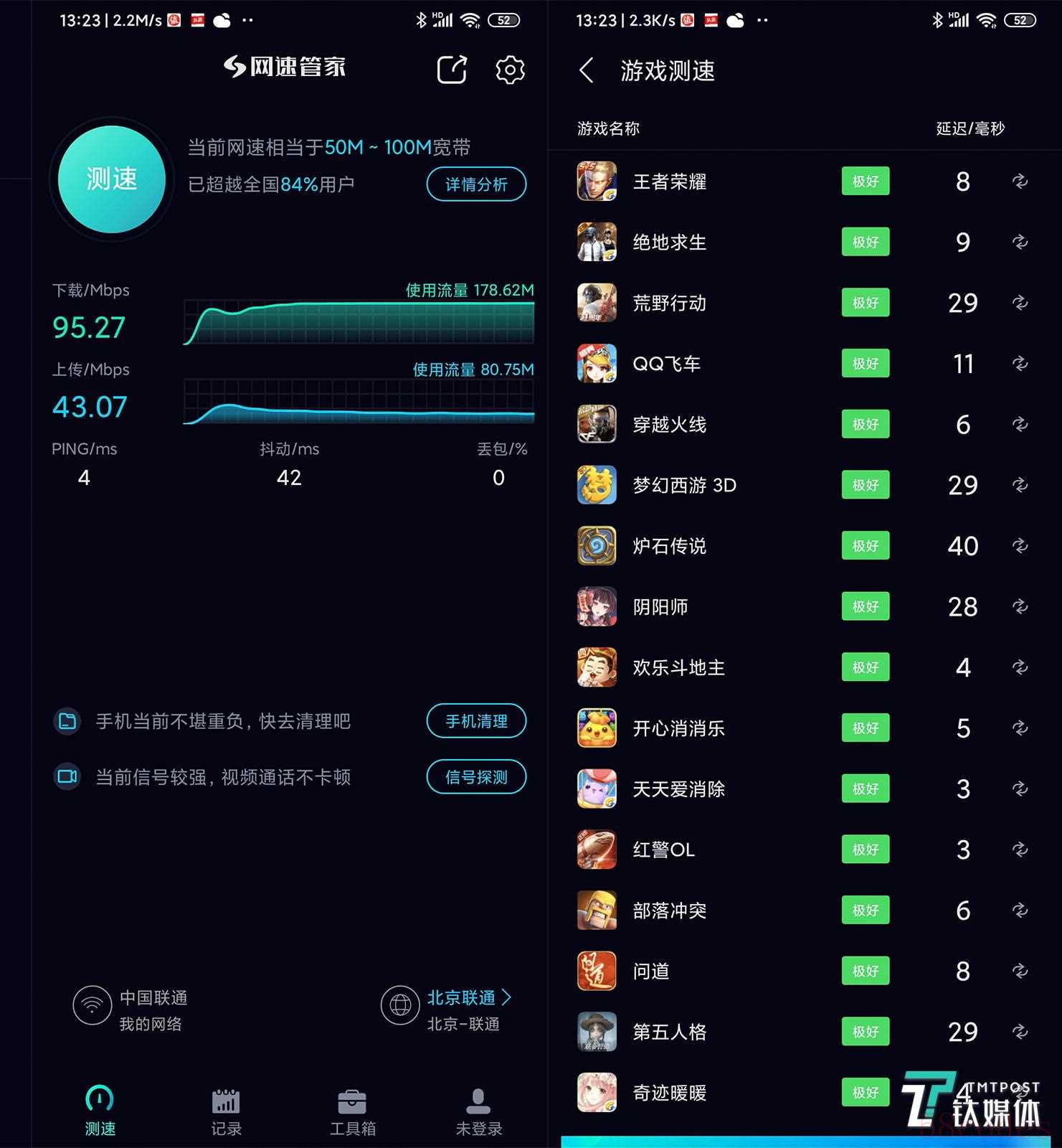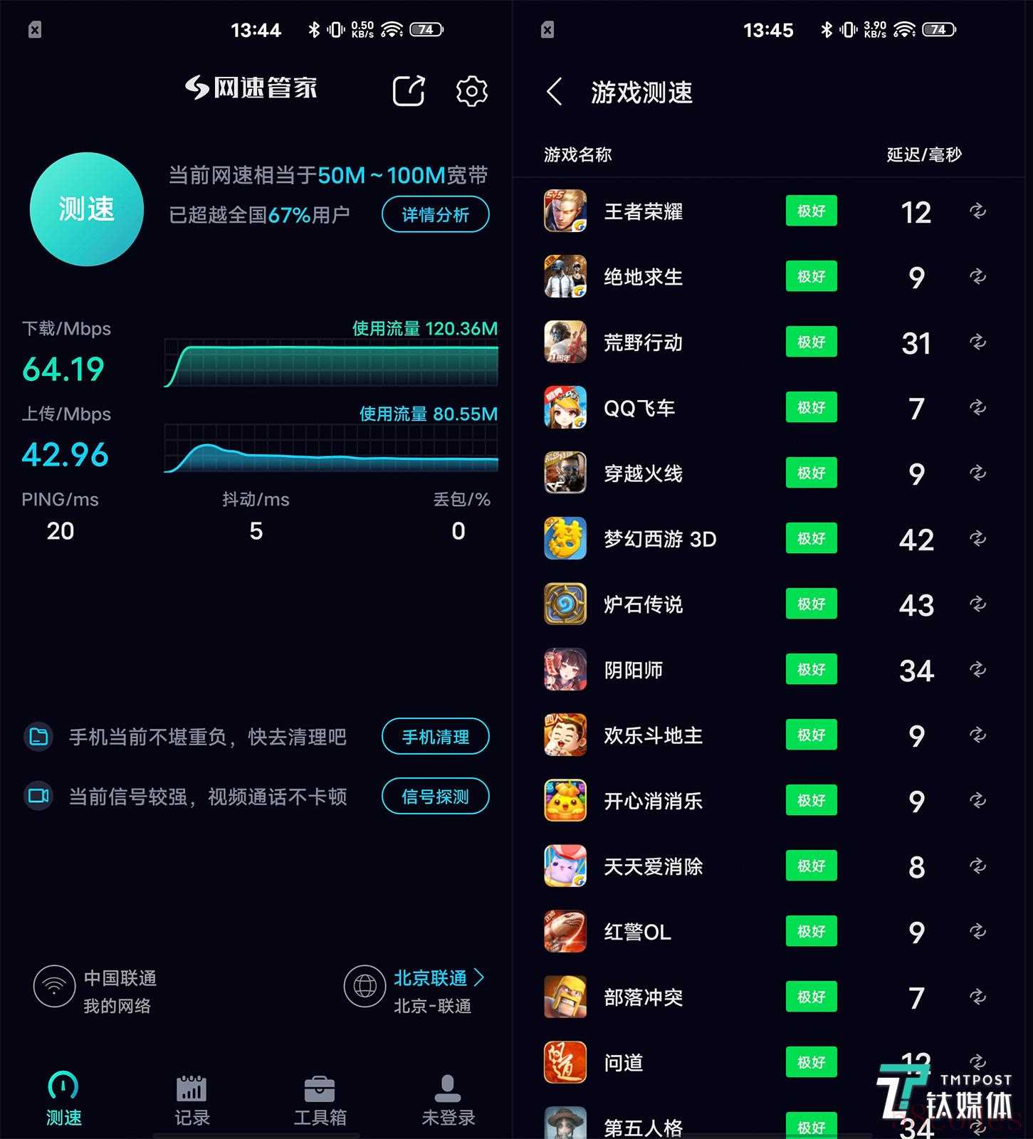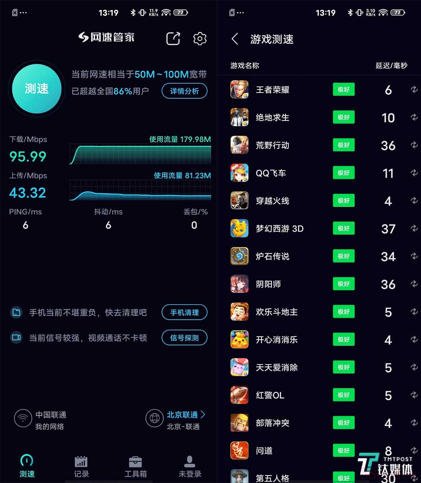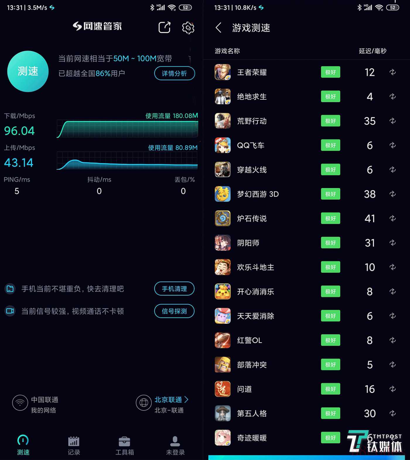 笔者只能推测,透过这个app进行测速的时候,无线连接会自动切换到最佳速率的节点(子路由信号频段)进行测试。这个切换过程可能并不能影响到其他的测速app。好在这个节点切换对于手机游戏的延迟影响并不大。