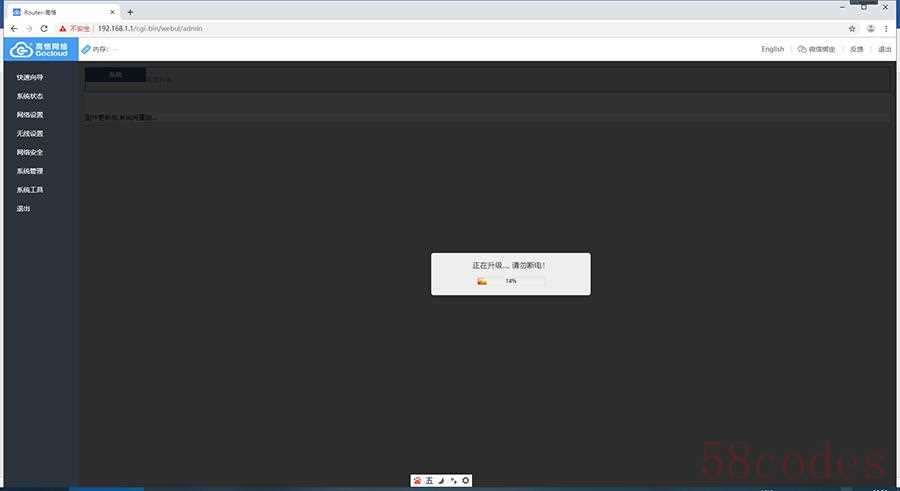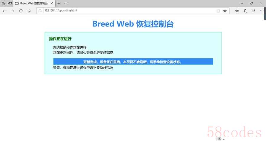 接下来就是正在升级状态,并有提示,请勿断电。