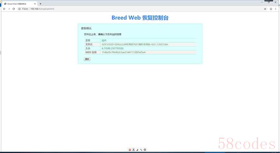 选择好文件后,点击上传,出现更新确认界面,点击更新。