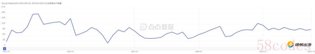 (2021.1—2025.10 Emoji Up全商店总下载量,图源:点点数据)