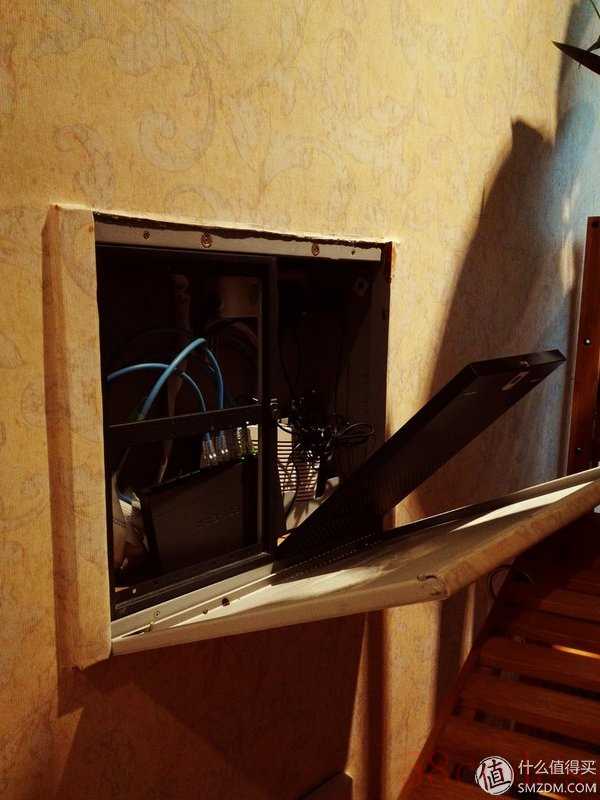 这里打开很方便,只是开关电源的话不用挪动花架直接打开就可以伸手进去开关了,挪动花架也很轻松,一般我半个月会关电源一会儿,里面只放了光猫交换机,,之前考虑NAS也放里面所以箱子买的比较大。装修的时候泥工一直说买这么大的做什么,他给别人装修其他人都是直接用的开发商预埋的箱子,那箱子就放得下个光猫,路由都困难.