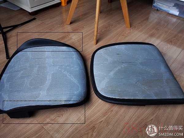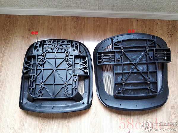 和售后谈了一下,客服说很多朋友都提出过建议,所以椅面的确是升级了,就花了28重新更换了个椅面,本来想在晒单里追加修改的,可是追加那里发不了图,就一并在这里说下,如图,新旧2个版本的椅面,主要区别椅面两边增加护翼,感觉这个是用来加固网面的紧固的免得容易松弛,新版椅面要小点,估计也是针对椅面网面的松弛度特别改小的,毕竟范围越小松弛的几率更小,