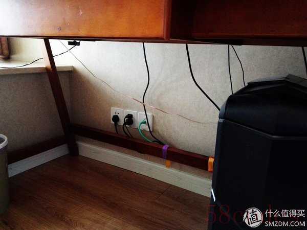 电脑桌下面网口插座,下面线有点乱,也懒得整理,没人会去注意这个位置