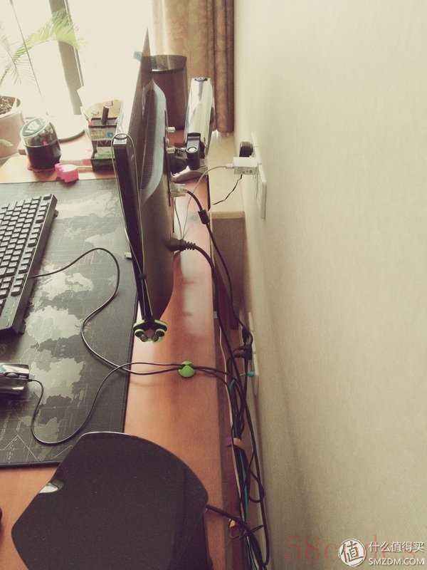 电器的插座在下面的柜子里,台面的东西简单说一下,连接就不给了,反正都是大妈经常推的货:路由是6300V2,刷的梅林,左边音箱上的是网易青果,三角形那个是众测的BroadLink万能遥控,电视是索尼48W,机顶盒是海美迪H7,这几个东西都在大妈这里晒过单,特别是青果这篇晒单涉及到防盗引来众多值友的吐槽,给出的建议也是天马行空,看评论赏心悦目