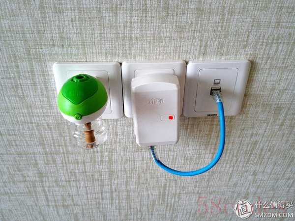 不过次卧的WIFI效果就差了点,实际上次卧比主卧离路由更近,应该是因为次卧和卫生间挨着,里面全部是瓷砖,屏蔽了信号的缘故,不过不怕,我还有个小东西,看图,就这样把他接上,整个房间信号全满,而且它不是无线桥接的哦,直接用网线连的,所以出来的WF效果货真价实,LOL都没问题