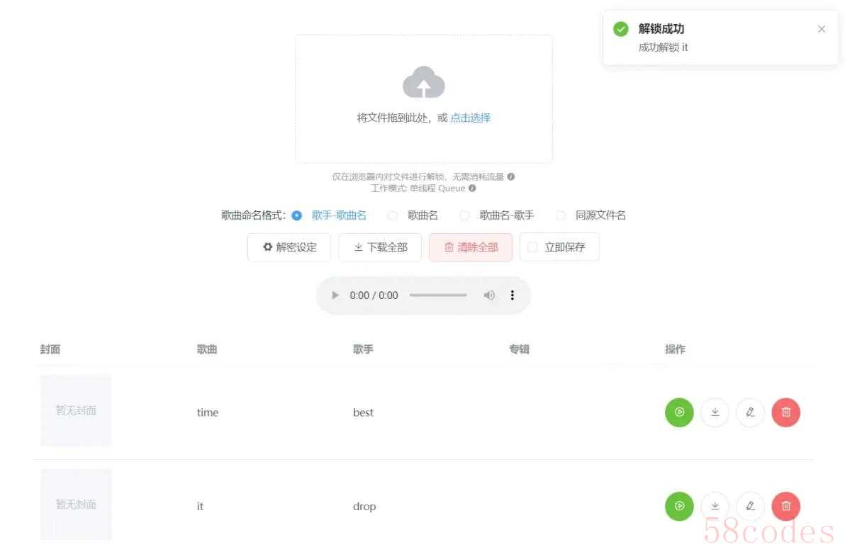 亮点:在浏览器内本地解锁,支持 Netease ncm,无需上传到服务器;小量转换很方便。