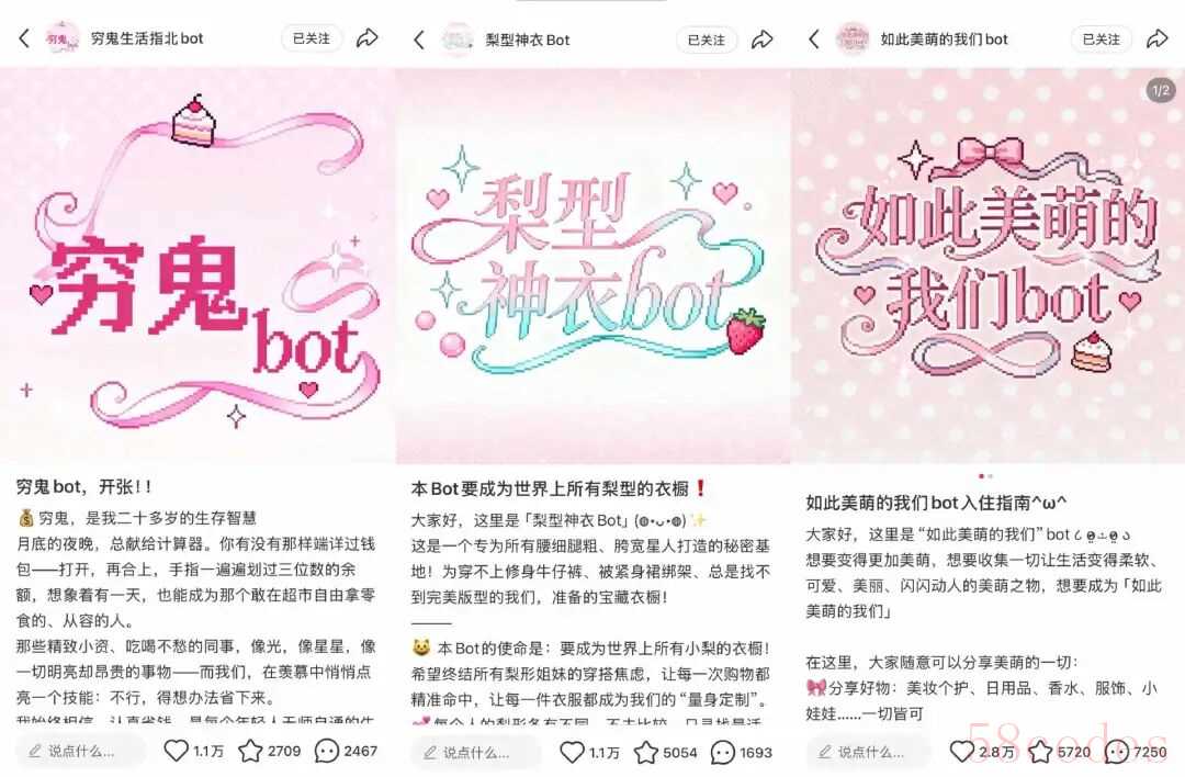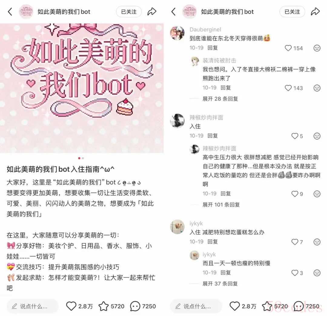 “如此美萌的我们bot”,便是最具代表性的账号之一,仅一条入驻小红书的笔记获赞2.8万,短短一个月涨粉11万,不少网友聚集在评论区求问变美教程、如何让穿搭变萌。