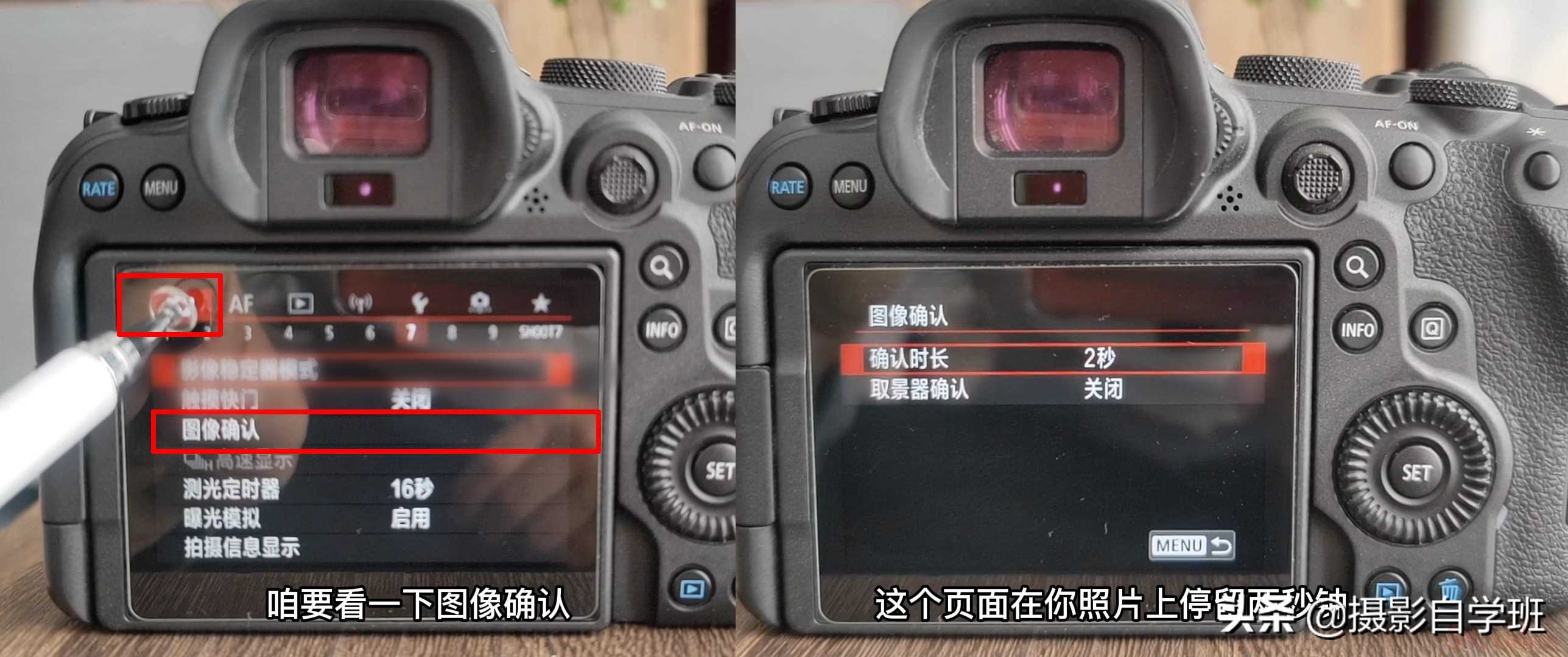 (1)点击MENU键,第一层第一个相机设置中,第二层第7个菜单下面有一个图像确认。