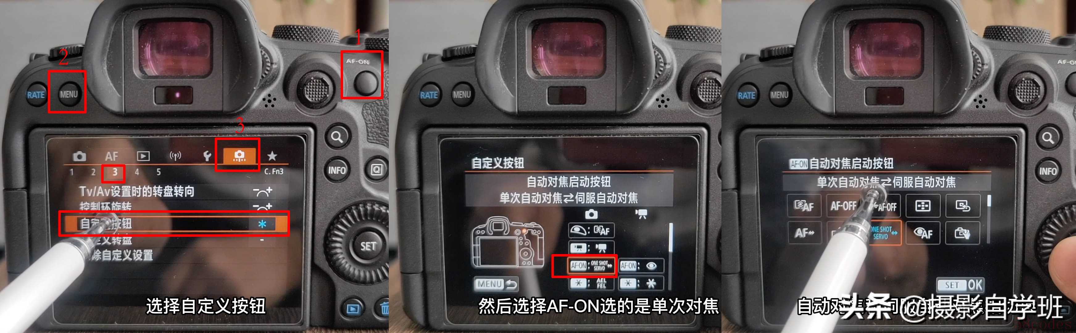 1、AF-ON设置成单次对焦、自动对焦和伺服自动对焦,相切换。