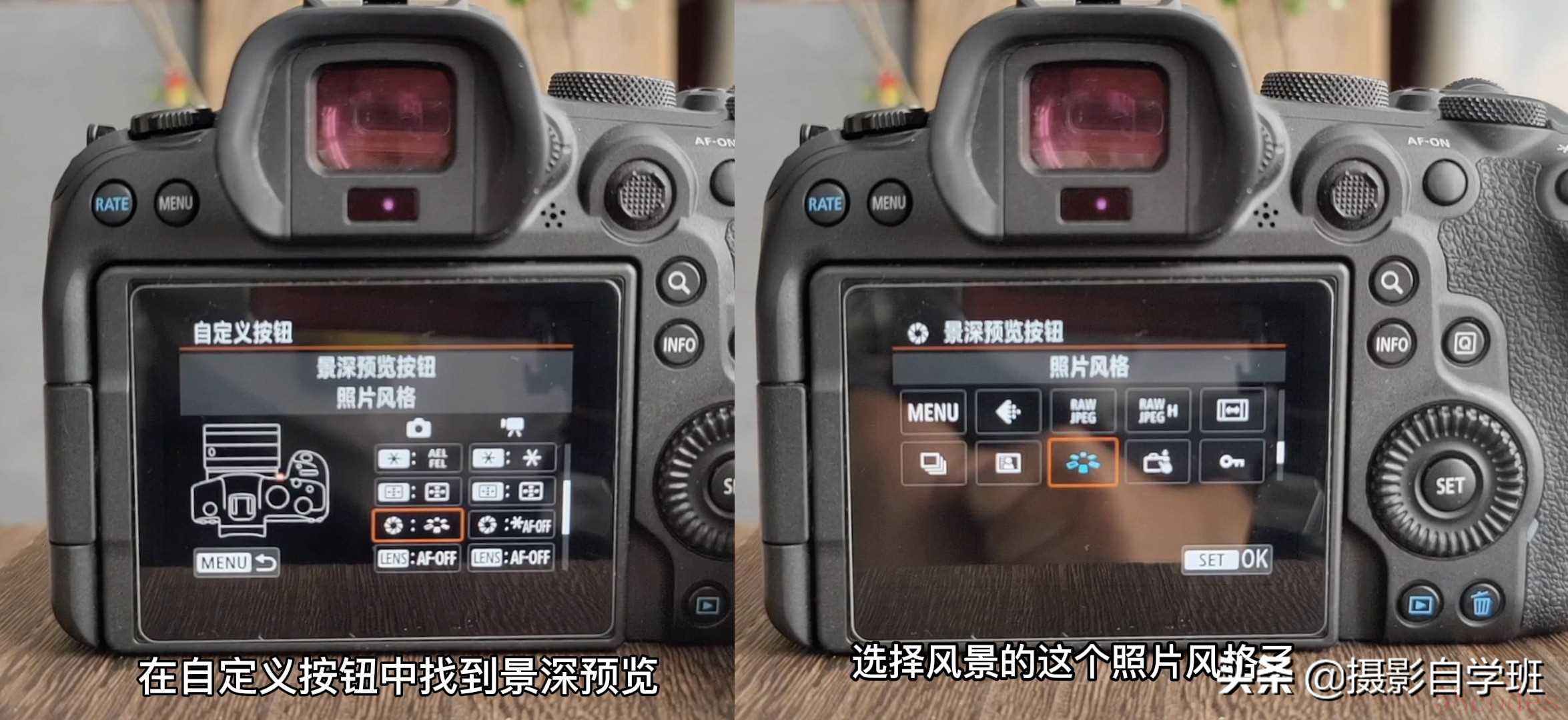 (2)在自定义选项中呢,选择景深预览,设置成照片风格,这样就可以使用景深预览按钮来选择人像拍摄还是风景拍摄。