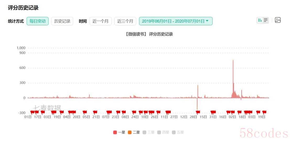 可以看到,4.5版本后,下载量有一定的下滑趋势,但应该是和运营有关系,在用户反馈这一块,查询七麦数据的评分记录,IOS端共1015条评论。