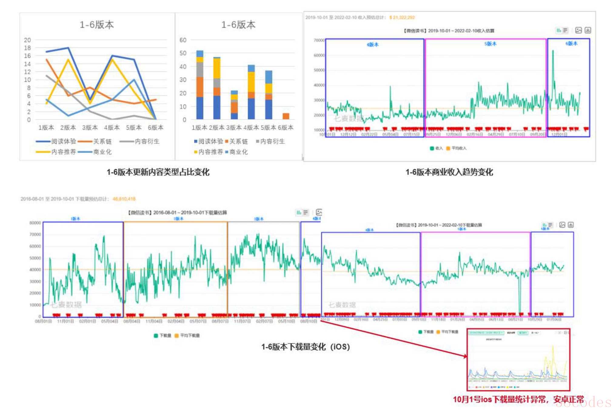 第4个版本,更新多,集中在内容和推荐上,并且商业化开始持续发力,4版本的影响持续到了5版本,在5版本后期,内容和推荐才告一段落,主要优化在商业化上。