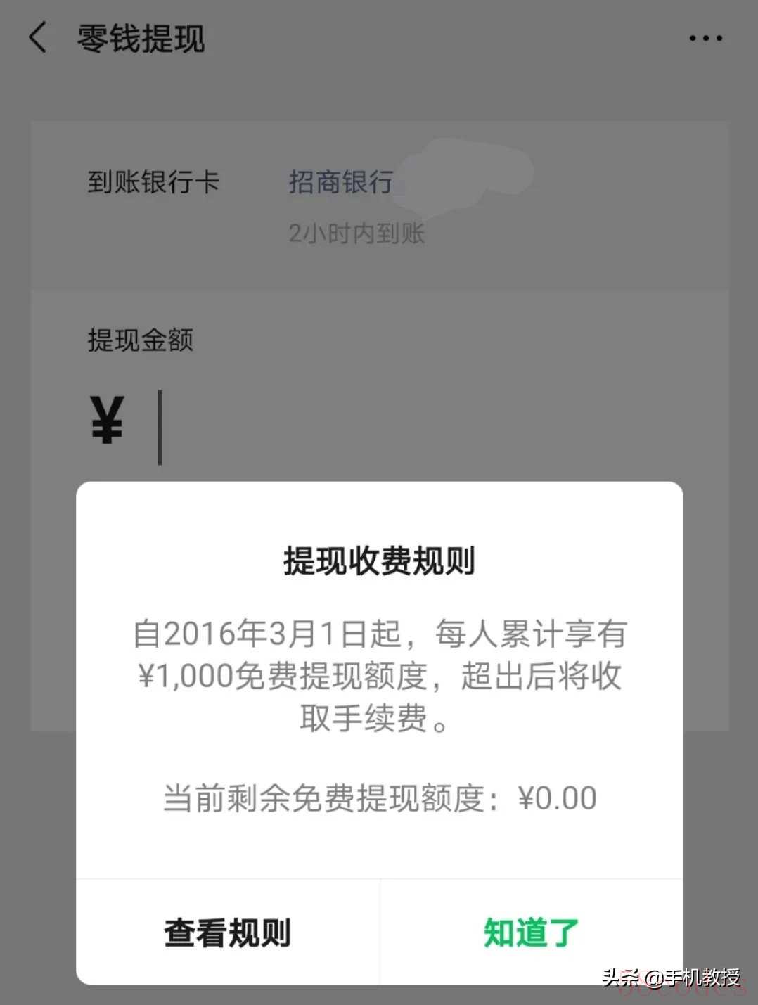 零钱提现的规则,早在2016年就被规定了,每人累计享有1000免费提现金额,超出按提现金额的0.1%收取服务费。
