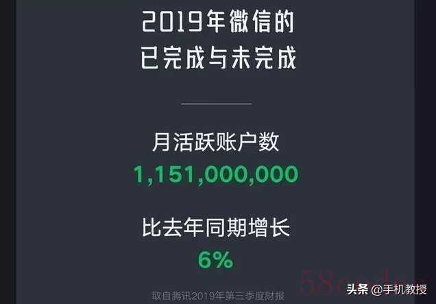 根据微信官方给出的2019年第三季度报告可知,微信目前的月活跃账户至少有 11.5 亿,对比一下中国现阶段的14亿人口,就能够知道微信的用户量是多么的庞大了。