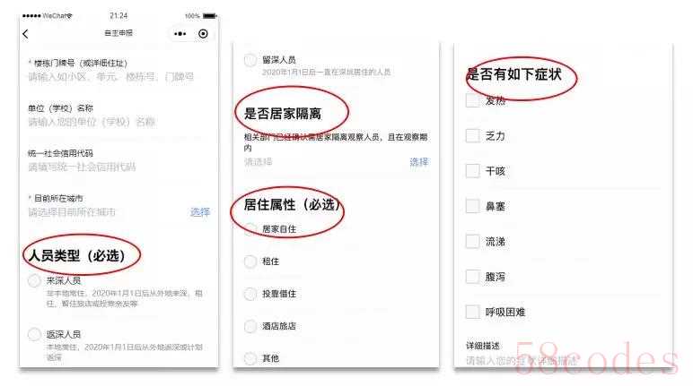 第一步:通过微信搜索“深i您-自主申报”小程序、i深圳公众号-抗击疫情-深i您自主申报、“i深圳”APP疫情防控服务专区入口等多途径进入自主申报平台,请根据实际情况填写基本信息、人员类型、是否居家隔离、居住属性、是否有如下症状、其他等信息,其中带*号和有必选字样的为必填项,请按照平台提示填写。