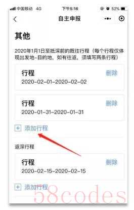 第二步:添加行程。如有多段行程,请在点击确定后,再次点击“添加行程”,添加下一段行程。