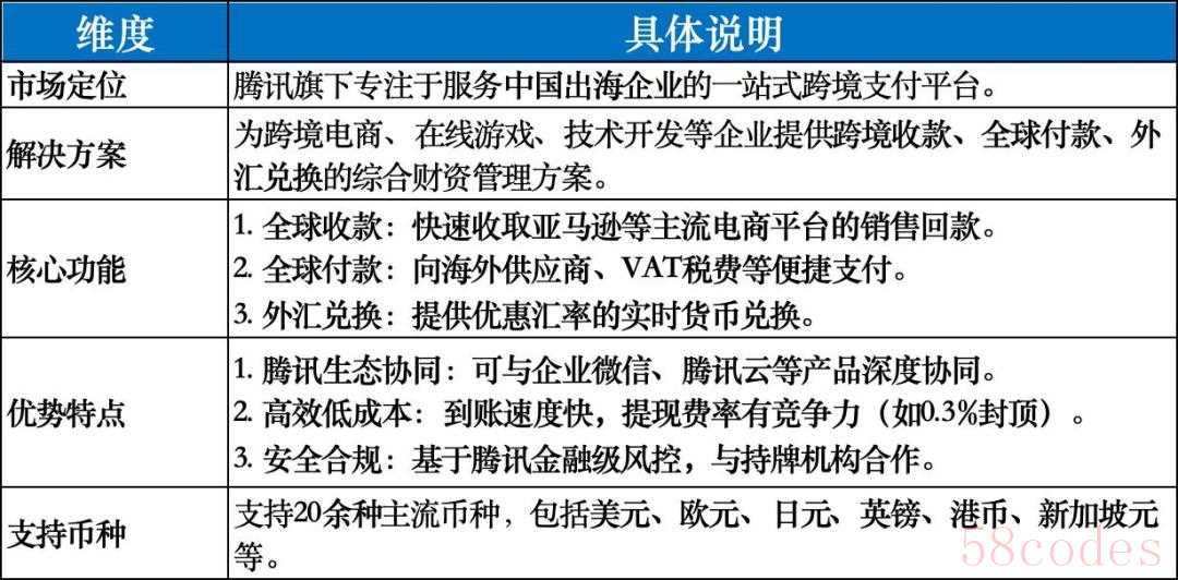 腾讯的官方跨境支付平台,依托腾讯生态,为全球企业提供跨境资金全链路解决方案。