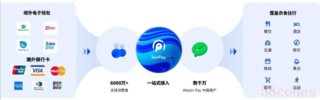 从上面这四种模式我们可以看到,TPG是对微信支付版图的全面升级,通过组建全球化的支付网络,把微信生态服务延伸到海外的本地和跨境商家的全生命周期服务。