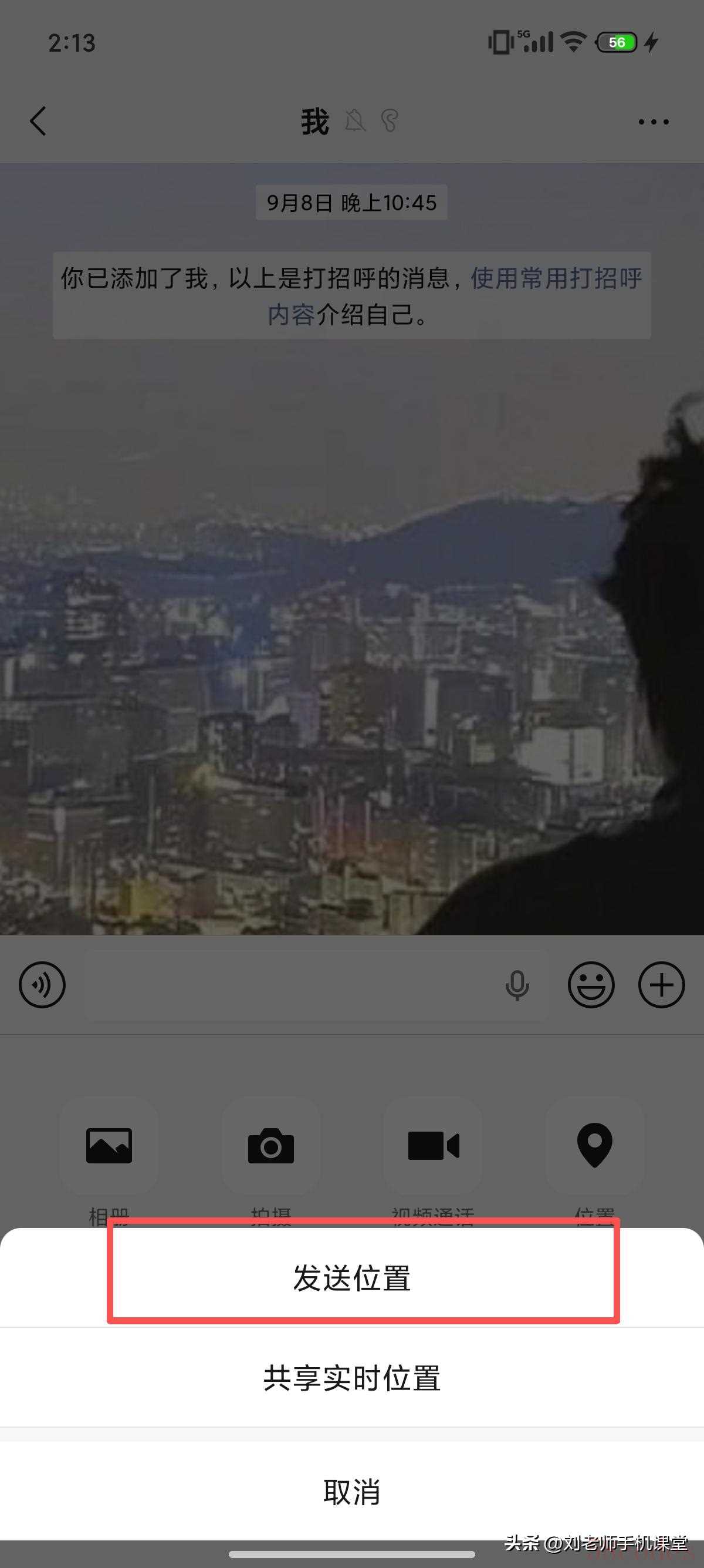 6. 在弹出的菜单中,选择“发送位置”选项。