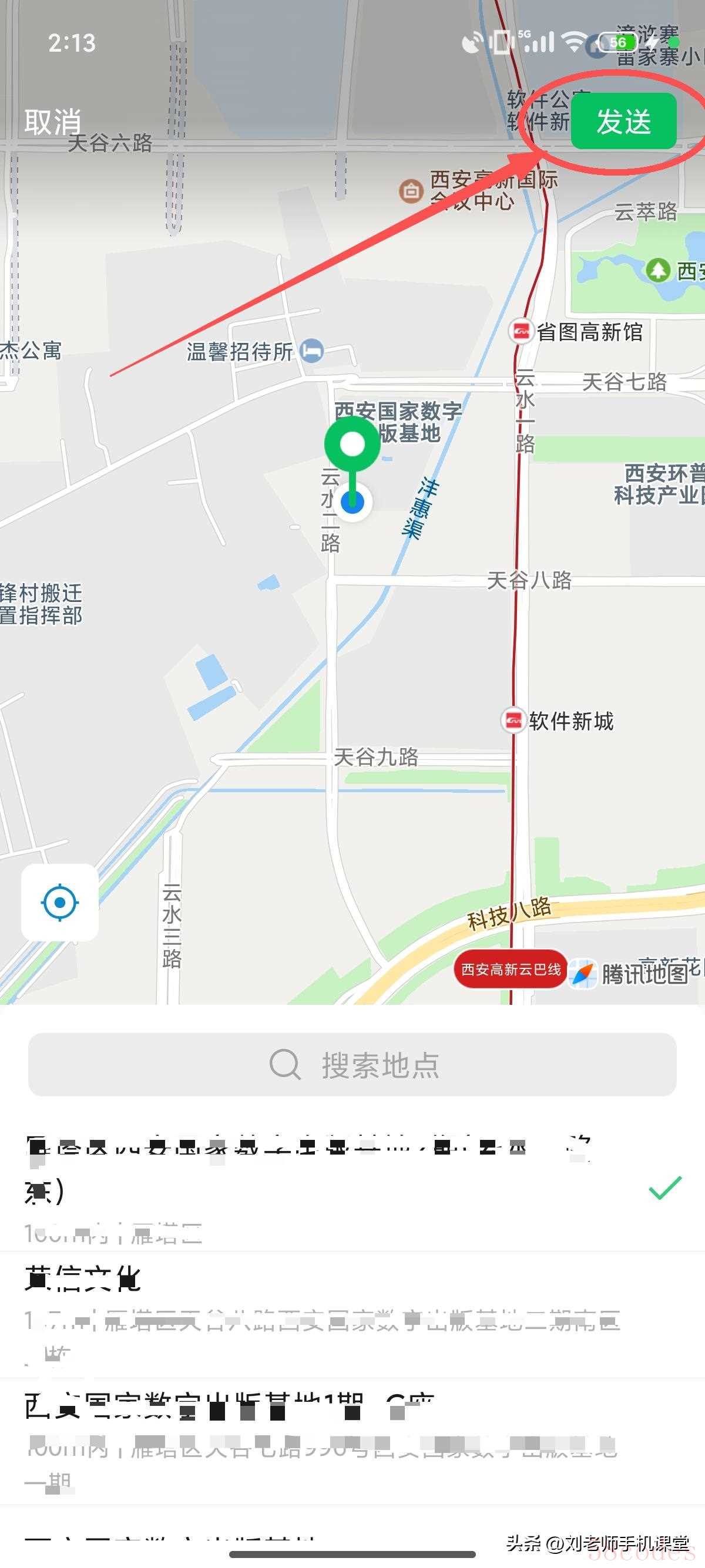 7. 在“发送位置”页面中,选择要发送的位置,并点击“发送”按钮。