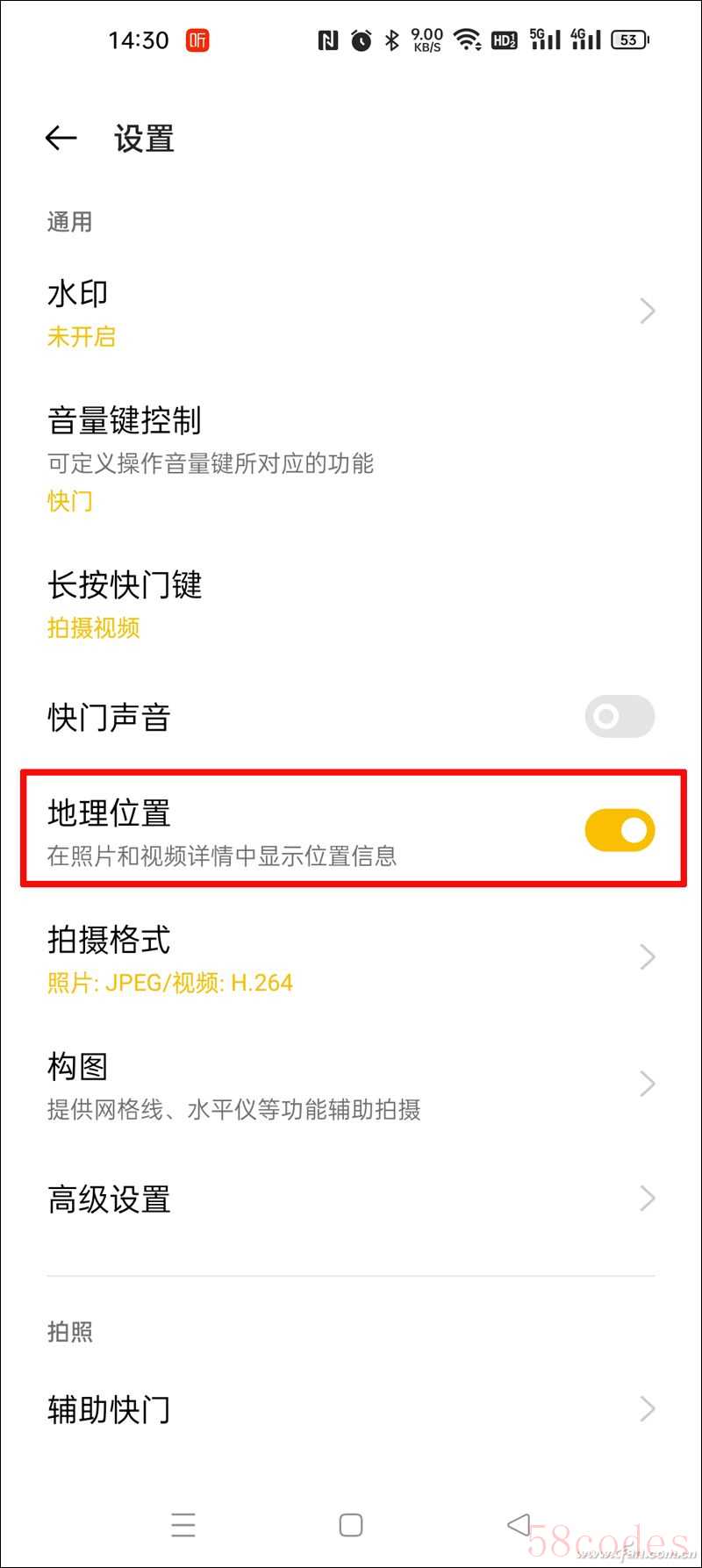 在Exif参数中,相信大家最不希望泄露的就是位置信息了吧?想防范这一点,可以进入手机相机APP的设置界面,关闭其中的“地理位置”选项。