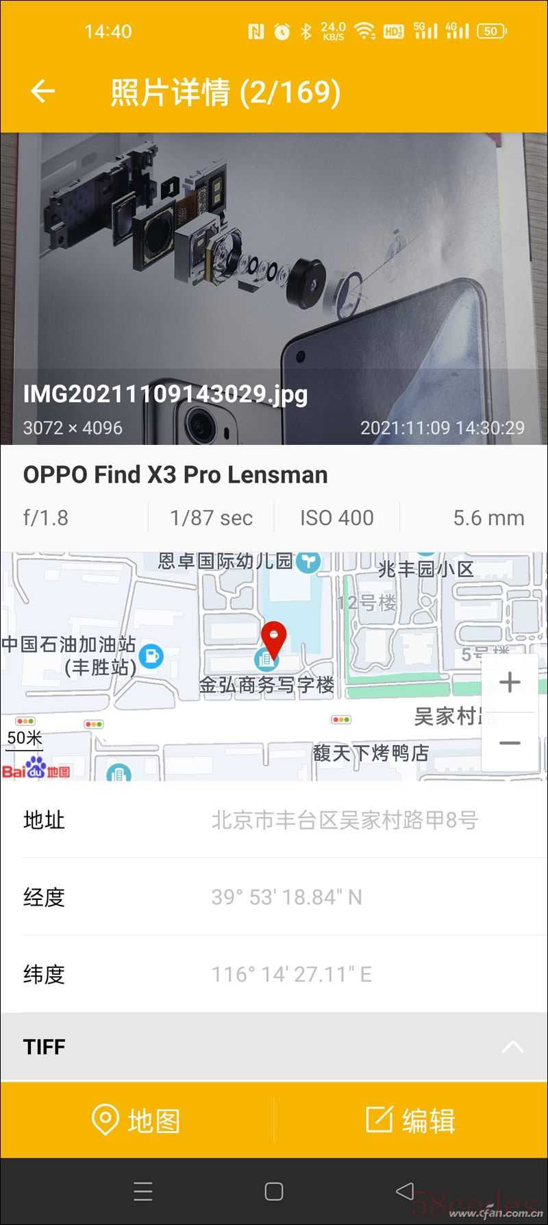 但是,对于手机相册中已经存在的照片,想要在分享时不泄露位置信息,就需要通过支持Exif编辑的第三方APP了。以“EXIF照片查看器”为例,通过这个APP打开任意照片都能直接查看、编辑位置和Exif信息,包括删除位置,将位置改为任意地区,以及修改拍摄手机型号参数等等。