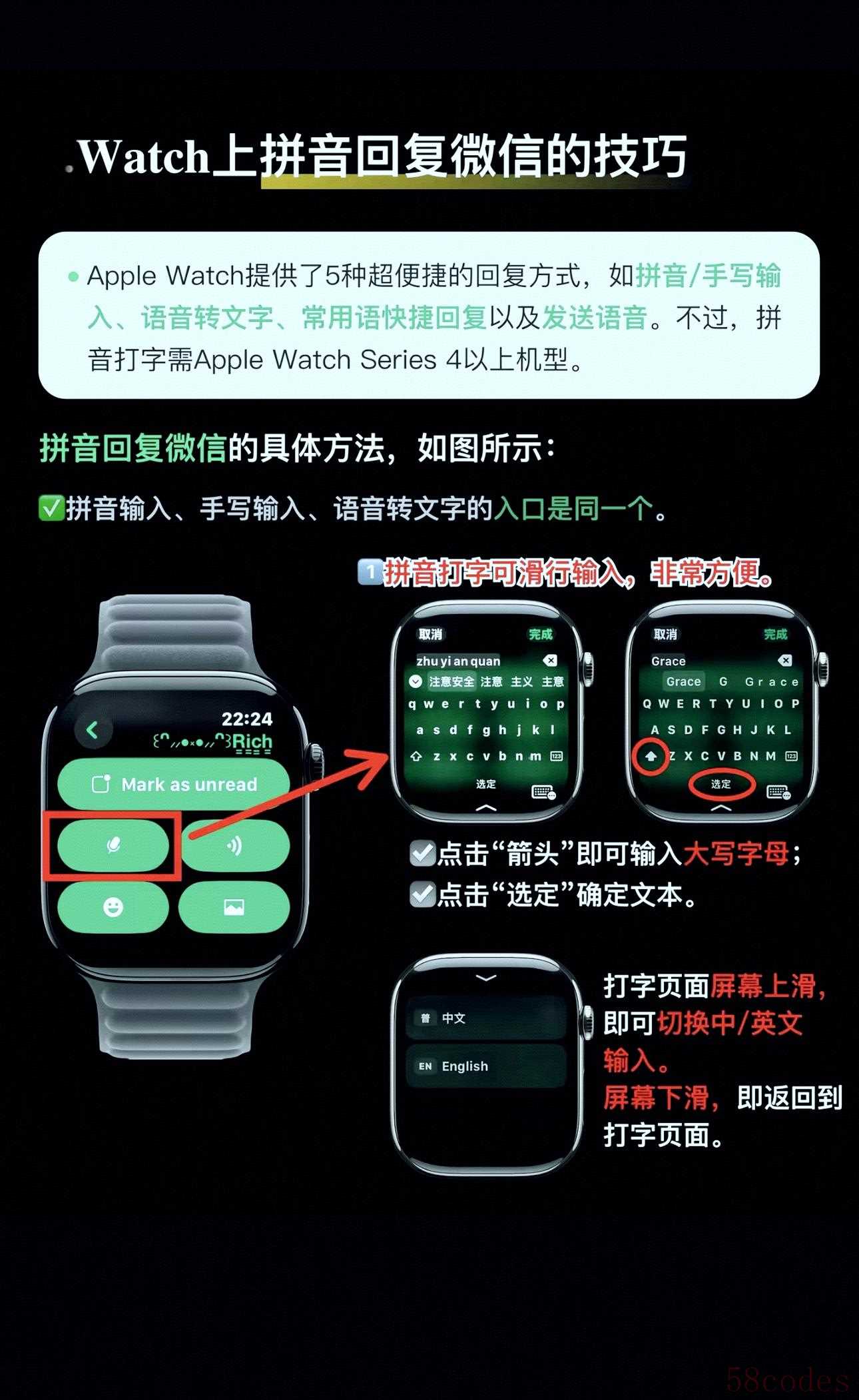Apple Watch Series 4 及后续机型,为咱们带来了方便的拼音输入功能。别看手表屏幕小,全键盘布局可是设计得相当巧妙,用指尖轻轻点击,就能快速打字。