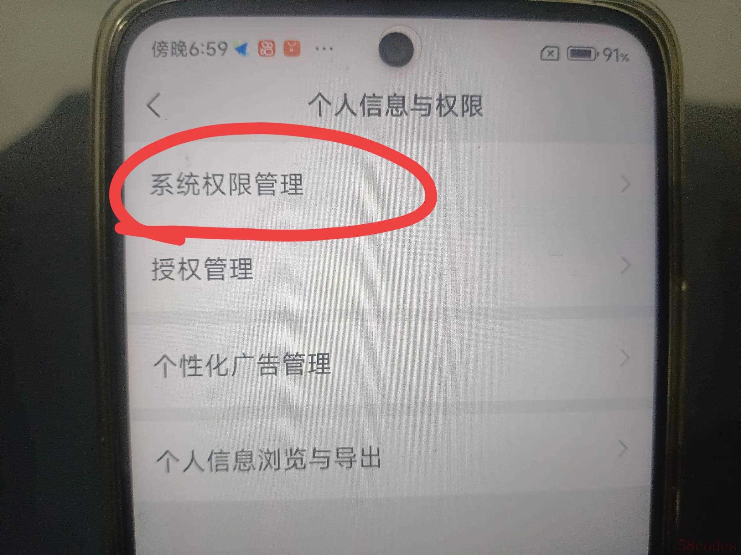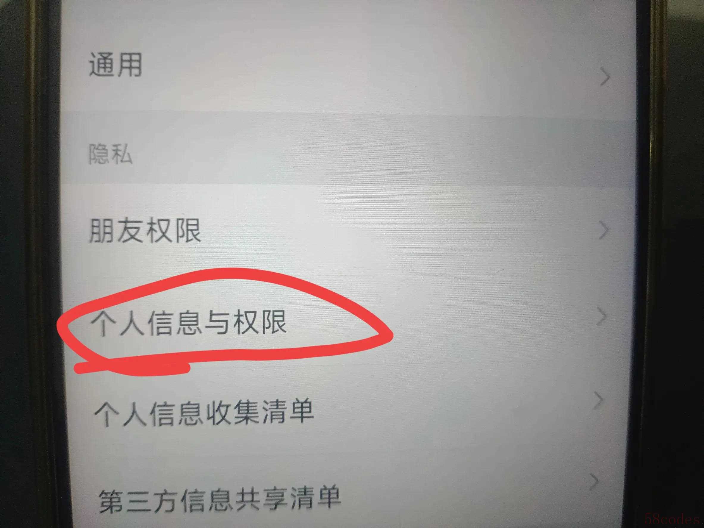 在设置页面,找到“个人信息与权限”并打开,(如上图所示)