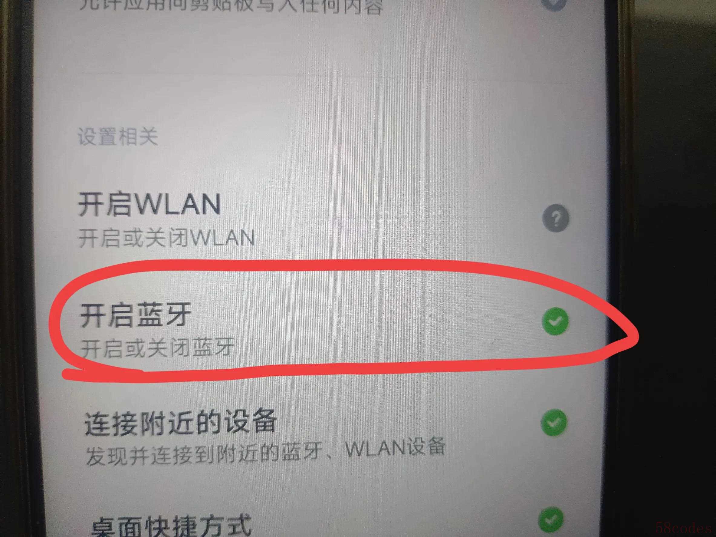 进入此页面后,可以往上滑,这里有开启或关闭蓝牙的权限,点进去,(如上图所示)