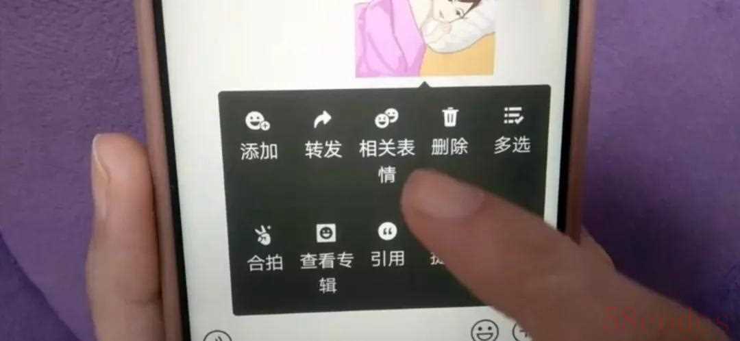 第三种方法就藏在相关表情里面,那这个按钮如何打开呢?其实方法也是很简单的,比如说好友给我发来了一个晚安的表情包,我想回复一个相应的表情包怎么办呢?其实方法也是很简单的,只需要把好友发的这个表情包长按着,立刻在下方就出现了一个“相关表情”。