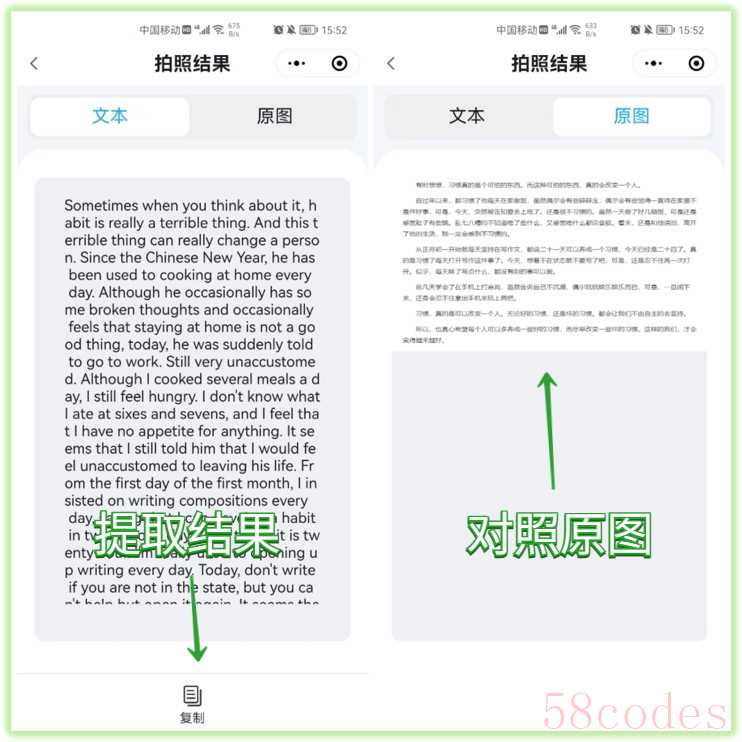 3.然后将原文档拍下来,即可自动翻译成英文,点击「复制」按钮,一键提取翻译结果。此外你还可以点击查看「原图」,对照结果。