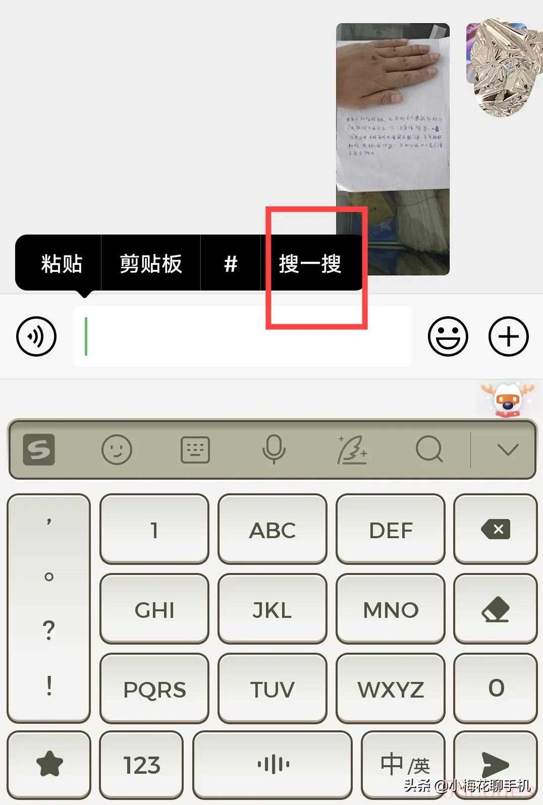 7.聊天对话搜一搜功能,对着聊天的对话框,输入文字的地方长按两秒钟
