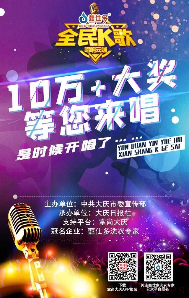 通过大庆日报、微大庆、大庆晚报官方微信,进入底部菜单“全民K歌”点击“报名”上传歌曲作品;