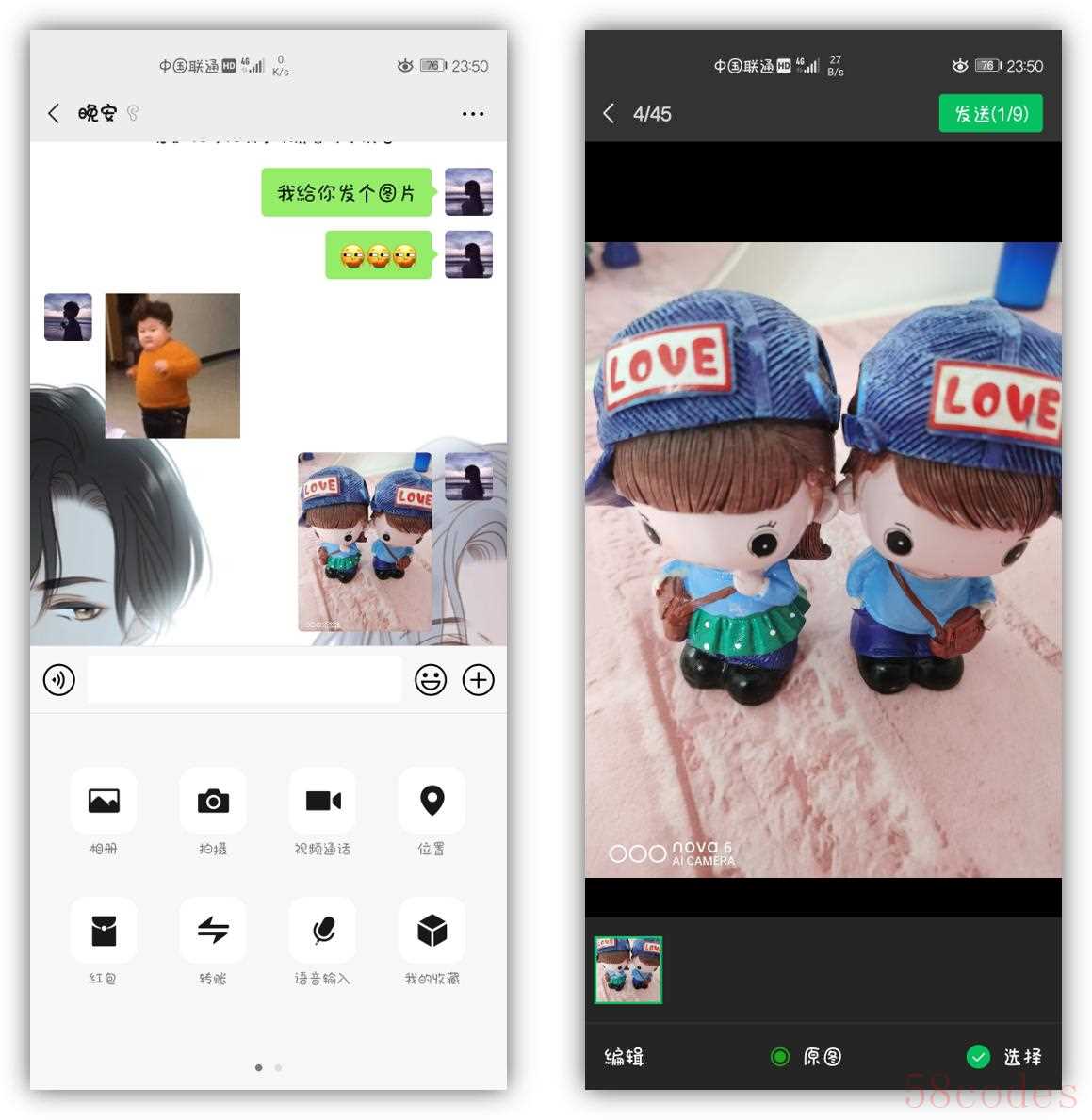 下面就给大家做一个演示:打开微信聊天对话框,然后点击【相册】功能,从手机相册中选择一张照片,在预览的时候点击【原图】,再将它发送出去。