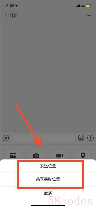 (3)然后在屏幕上有两个选项,一个为“发送位置”,另一个为“共享实时位置”。前者是大家经常使用的,就是将我们所在的位置发送给我们的好友,它有个弊端就是不是实时的,而且位置我们也是可以随便的更改。