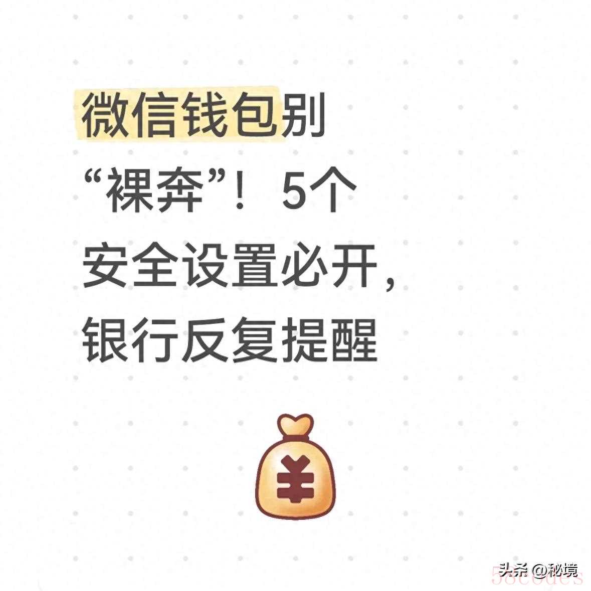 这确实是一个非常重要的话题!随着微信支付的普及,保护我们的“数字钱包”安全变得尤为重要。“裸奔”在这里的意思就是,如果不做任何安全设置,账户信息就相对暴露,存在被盗用的风险。银行和支付平台反复提醒,正是因为相关的风险确实存在。