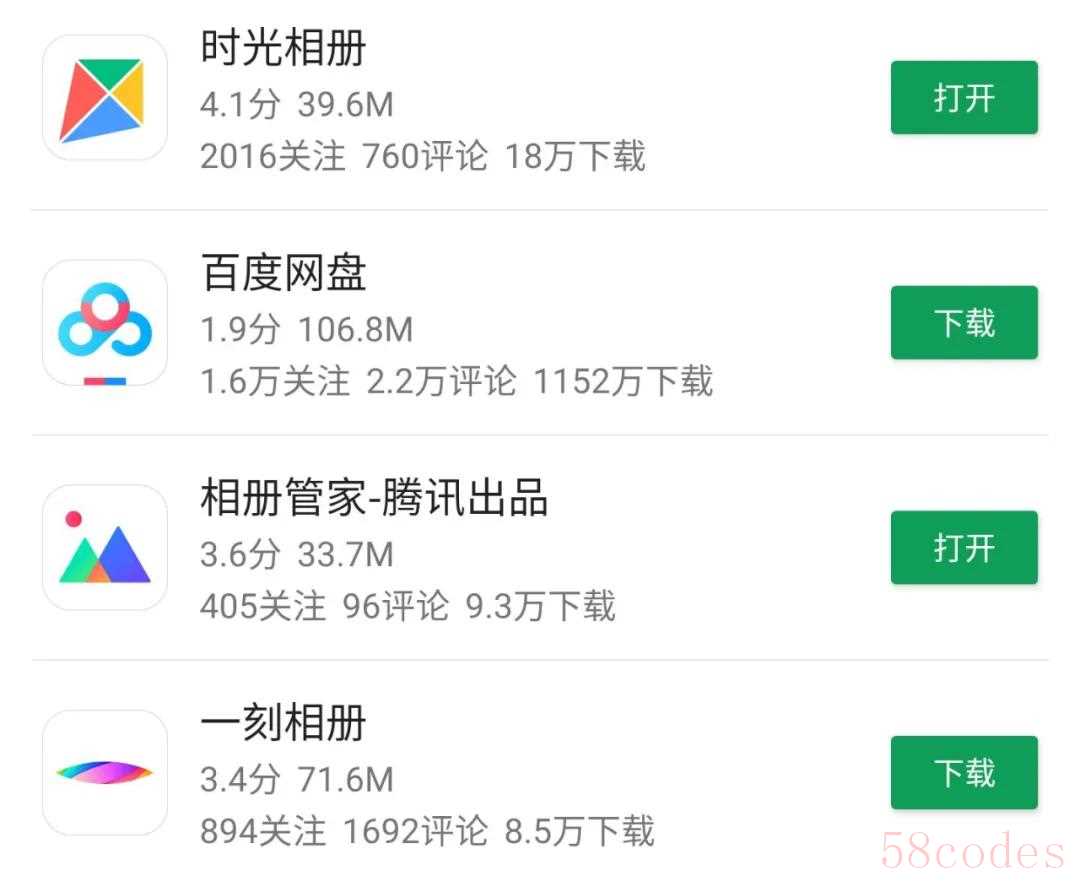 分别是来自腾讯的腾讯相册管家、来自字节跳动的时光相册、来自百度网盘的一刻相册。