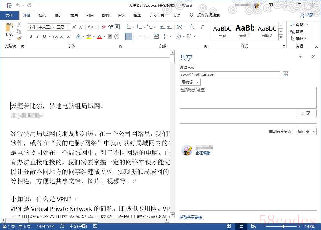 OneDrive的协作功能也比较好用,因为它可以和本地Office套件或在线Office 365集成在一起,只要在这些组件中打开文档并共享即可。以Word 2019操作为例,在Word打开需要协作的文档,点击右上角的共享按钮,按提示将文件保存在OneDrive后打开,接着就可以添加微软账户进行协作,只不过由于其服务器在国外,访问和打开的速度较慢(图15)。