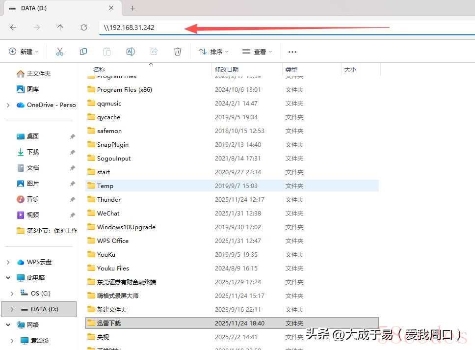 10,在另一台电脑的文件管理器上方,输入192.168.31.242(这是示例网址,具体要参考你自己要访问的电脑的IP地址。