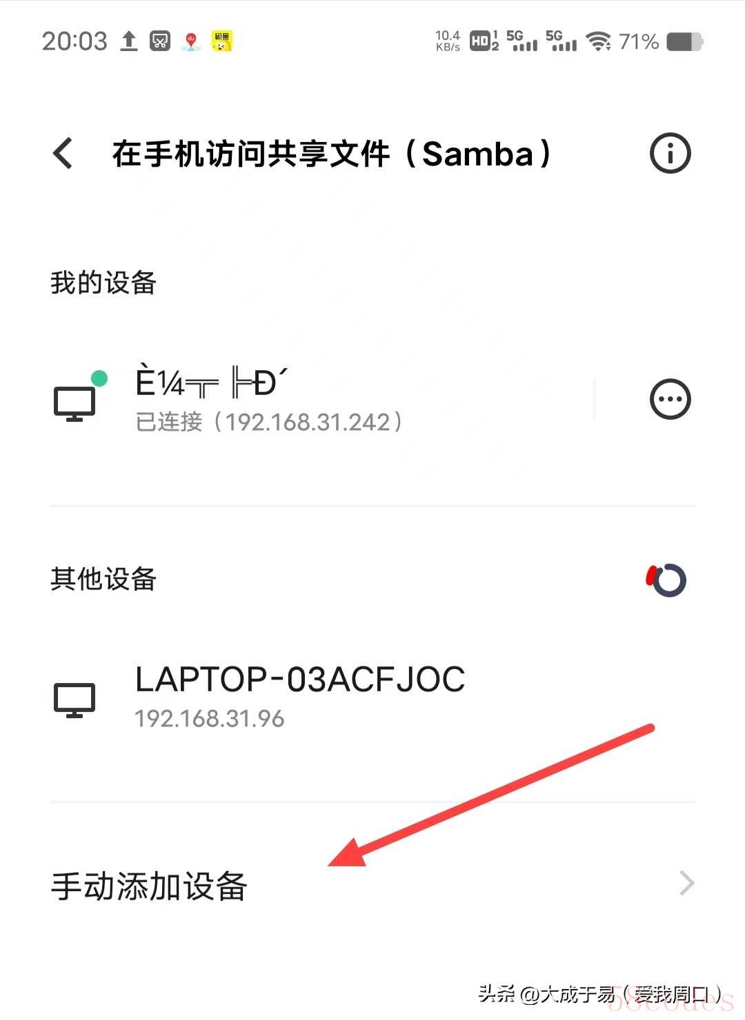 12,手机访问共享文件夹。最后一步,我没法截图,就是添加设备的时候,要填写要访问的电脑的IP地址、用户名和密码。
