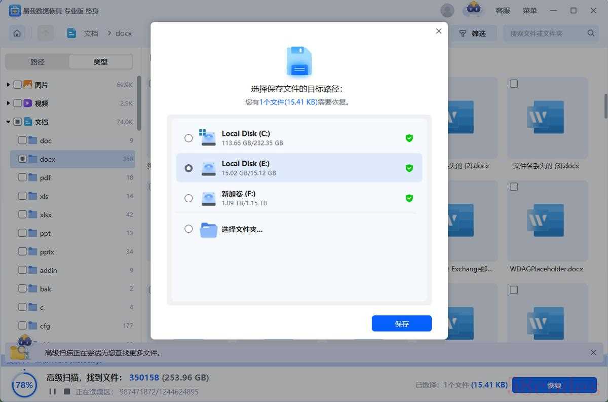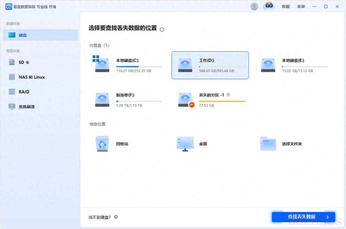 如果回收站已清空,且系统未开启备份功能,这时候专业数据恢复软件就是最可靠的选择。其中易我数据恢复是操作最简单、成功率最高的工具之一,也是怎么恢复回收站删除的照片和视频的核心解决方案,无论电脑新手还是老手都能快速上手。